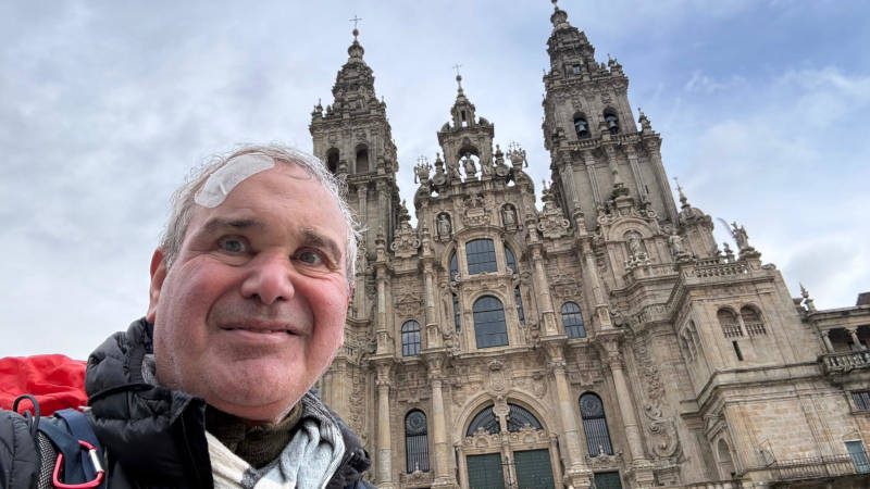 Cando atravesaba un dos tramos do concello de Forcarei tivo unha caída e precisou asistencia médica con 7 puntos de sutura. A pesares dese incidente puido rematar a súa peregrinación chegando o día 5 ao Obradoiro.